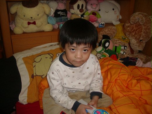 他半夜還一直踢被...害我得把他緊緊抱住不讓他動來動去ㄉ...