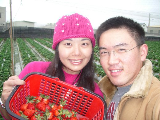 一路上我們都堅守著一定要很紅很尖才可以採的原則與精神. 一粒一粒的剪下來, 輕輕放進籃子裡. 說真的, 採草莓真的很辛苦ㄟ…要一直彎下腰把每一粒草莓背面翻過來看看. 或許他們不用剪刀, 直接用手採比較快吧! 我因為在路上喝好多水, 天氣又很冷, 所以採草莓時不是很舒服, 想上廁所又一直咳嗽. 真的很少人像這樣玩得這麼ㄍㄧㄣ的. 想上廁所還不能上…要繼續採下去…寇特司比比…最後實在忍不住才請ㄚ伯帶我去三合院裡面上. 我是第一次進去三合院, 以前都是看電視的, 所以感覺滿新鮮的.