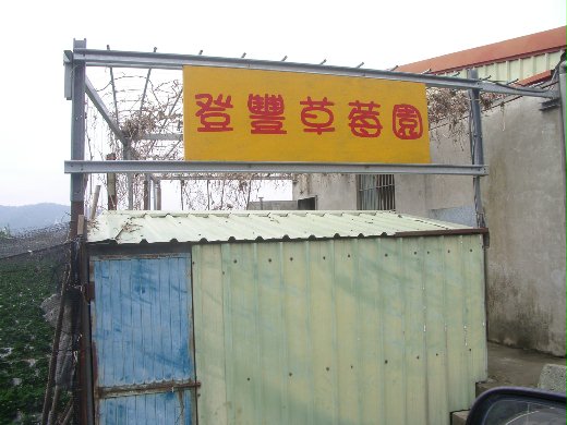 我們到了大湖之後, 一路上都是草莓園ㄚ, 採草莓, 很多牌子都是跟草莓有關的…但是因為是馬路邊的草莓園, 所以都不考慮了. 路邊空氣比較沒那麼乾淨, 而且會很沒氣氛, 邊採草莓, 邊有車子在旁邊經過. 比比在網路上總共記了兩家. 一家是甜美草莓園, 因為我們沒有事先預定, 所以他們不行讓我們過去, 說那天已經有一百四〸幾個人參加了…話都他們在說…另一家是登豐草莓園. 開沒多久就看到登豐的牌子. 我們從大馬路直進去農地的小馬路, 大概只有一台車可以經過, 穿越了好幾個農田後才又看到登豐草莓園…….